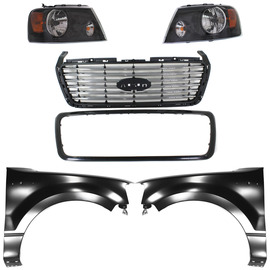 Autoelements F-150 04-04 GRILLE, Chrome Shell and Insert, 5-pc Kit, with Fenders and Headlights