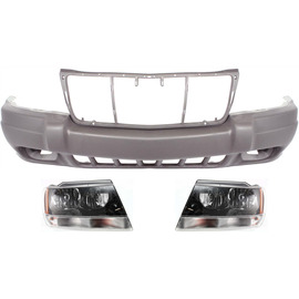 Autoelements GRAND CHEROKEE 99-03 FRONT BUMPER COVER, 3-pc kit, with Headlights