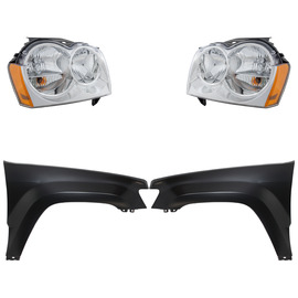 Autoelements GRAND CHEROKEE 05-07 HEAD LAMP RH AND LH, Assembly, Halogen, 4-pc Kit, with Fenders
