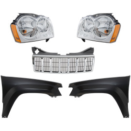 Autoelements GRAND CHEROKEE 05-07 GRILLE, Chrome Shell and Insert, 5-pc Kit, with Fenders and Headlights