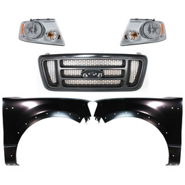 Autoelements F-150 04-06 HEAD LAMP RH AND LH, Assembly, Halogen, 5-pc Kit, with Fenders and Grille Assembly